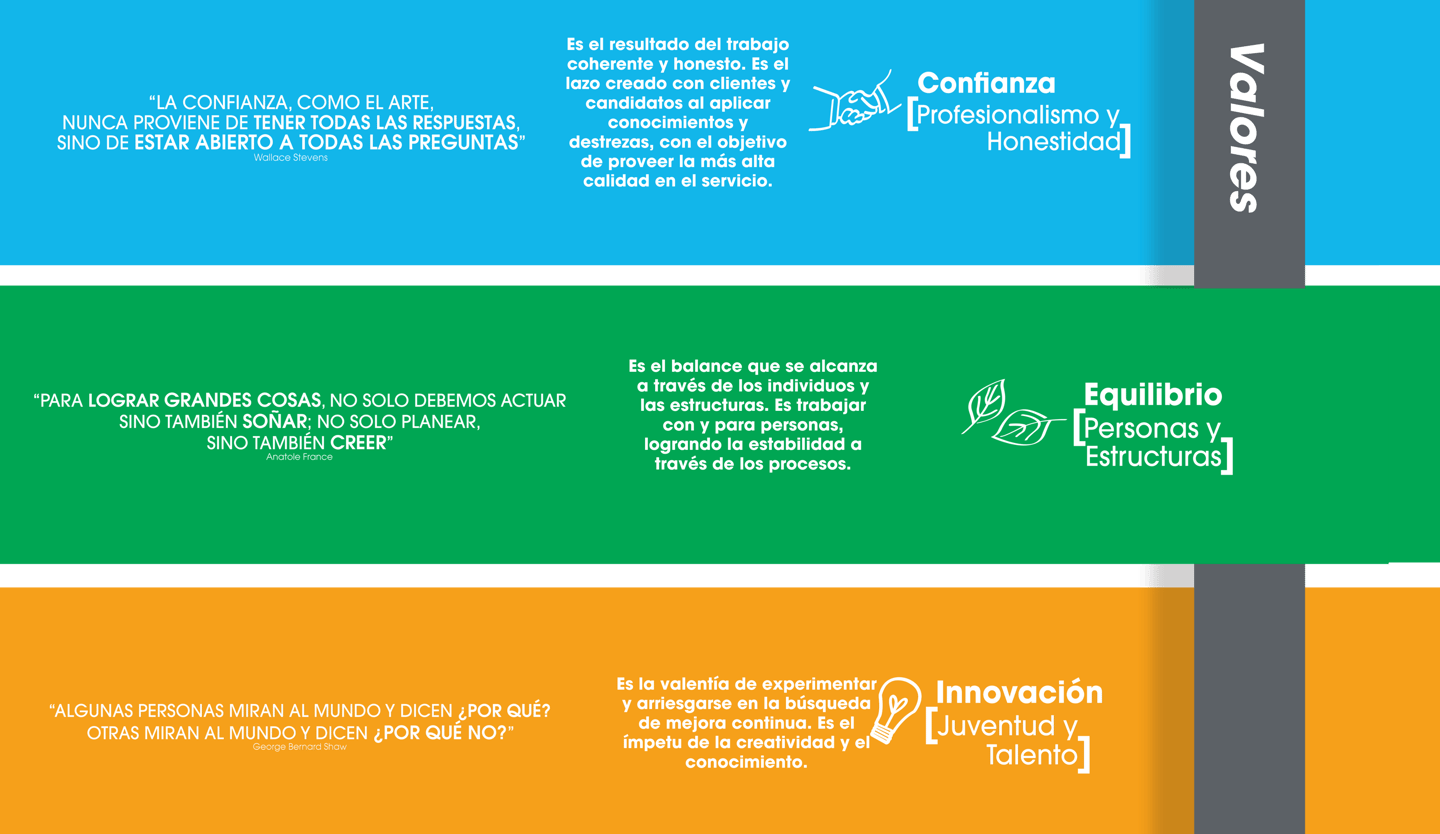 Ser el proveedor de soluciones de integración y desarrollo de talento líder en el país, a través de prácticas responsables y éticas que contribuyan a la sustentabilidad del entorno laboral.